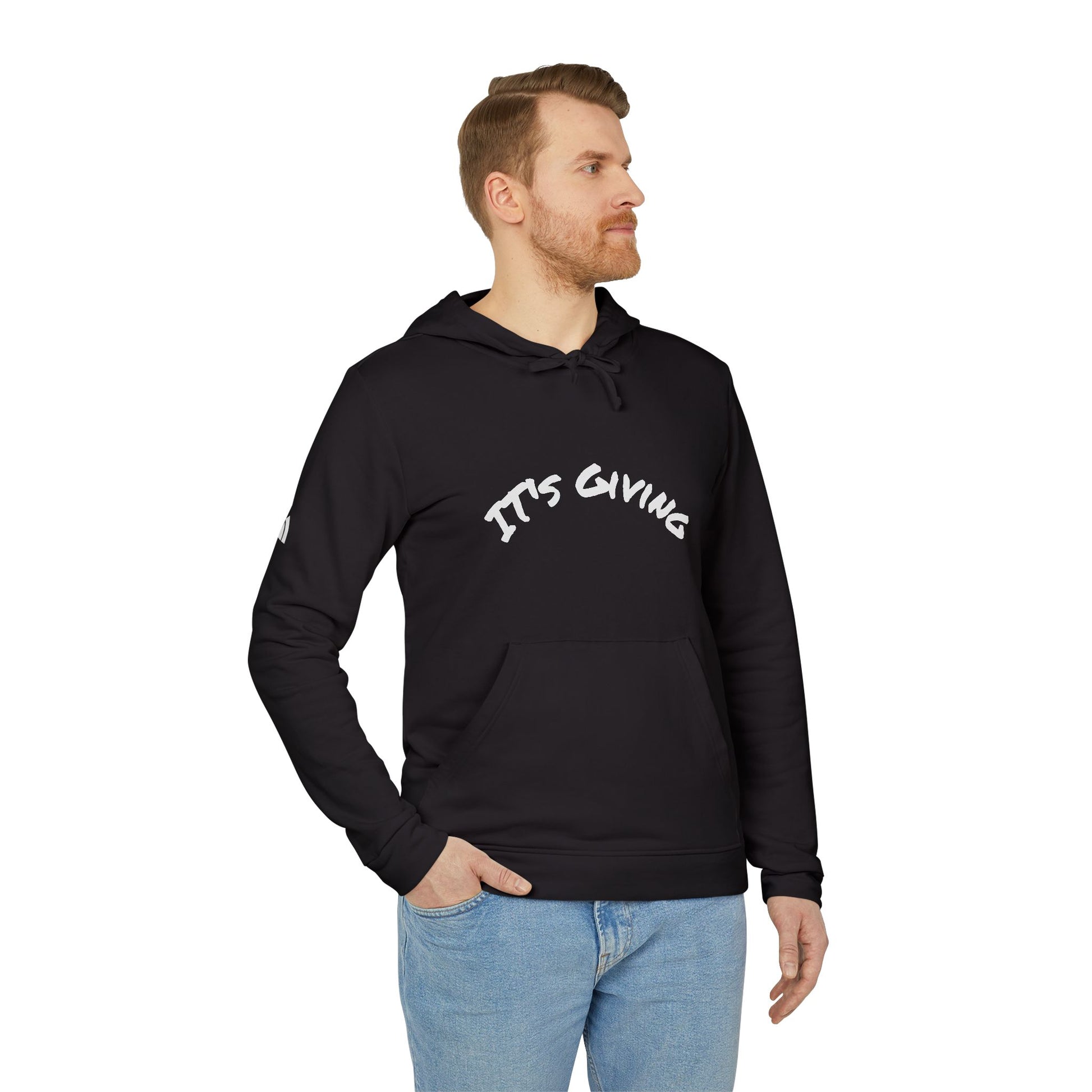 Cozy Unisex Fleece Hoodie with Subtle 'It's Giving slang word Casual Loungewear for Men & Women, Athletic Gear, Perfect Gift for Any Occasion